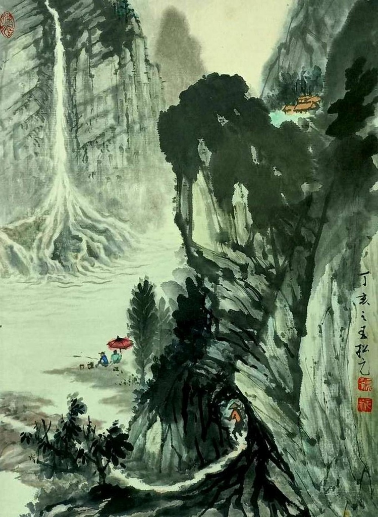 山陰弄竿多愜意 觀瀑閒釣樂安居